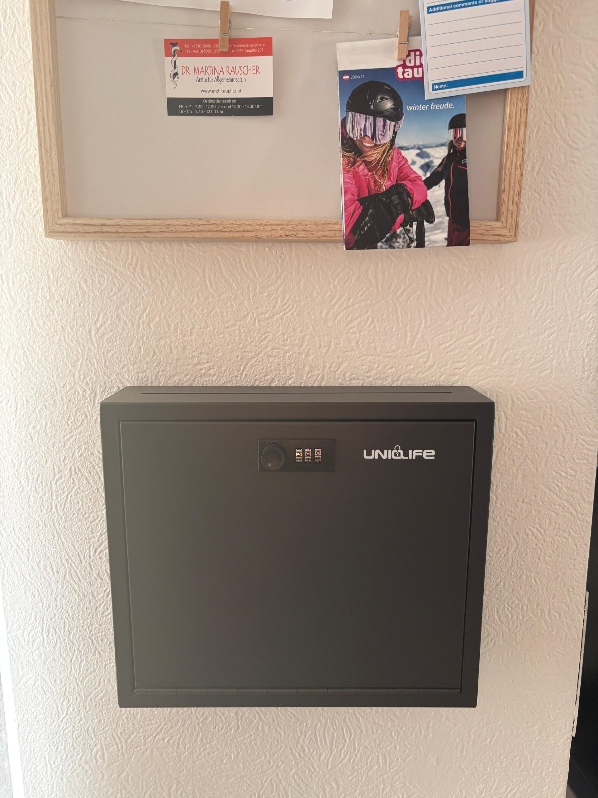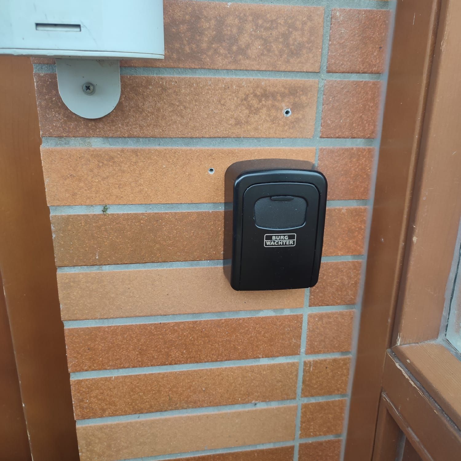 - Rechts neben der Eingangstür befindet sich eine an der Wand montierte Schlüsselbox.