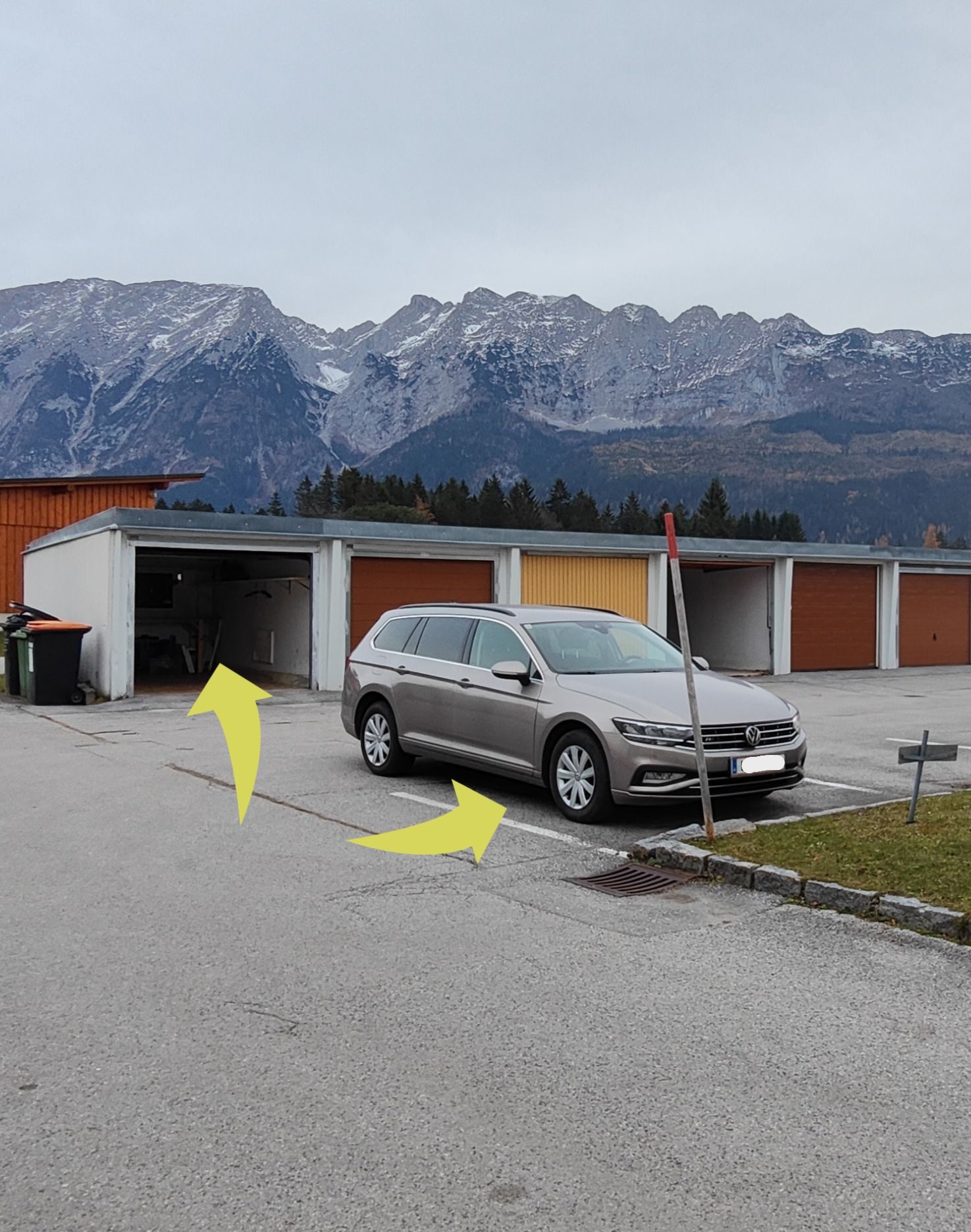 Der Parkplatz zur Wohnung Nr. 12 befindet sich links vom Haus, gegenüber der ersten Garage, die auch zur Wohnung gehört. Die Funkfernbedienung findest du auch im Schlüsselsafe.
